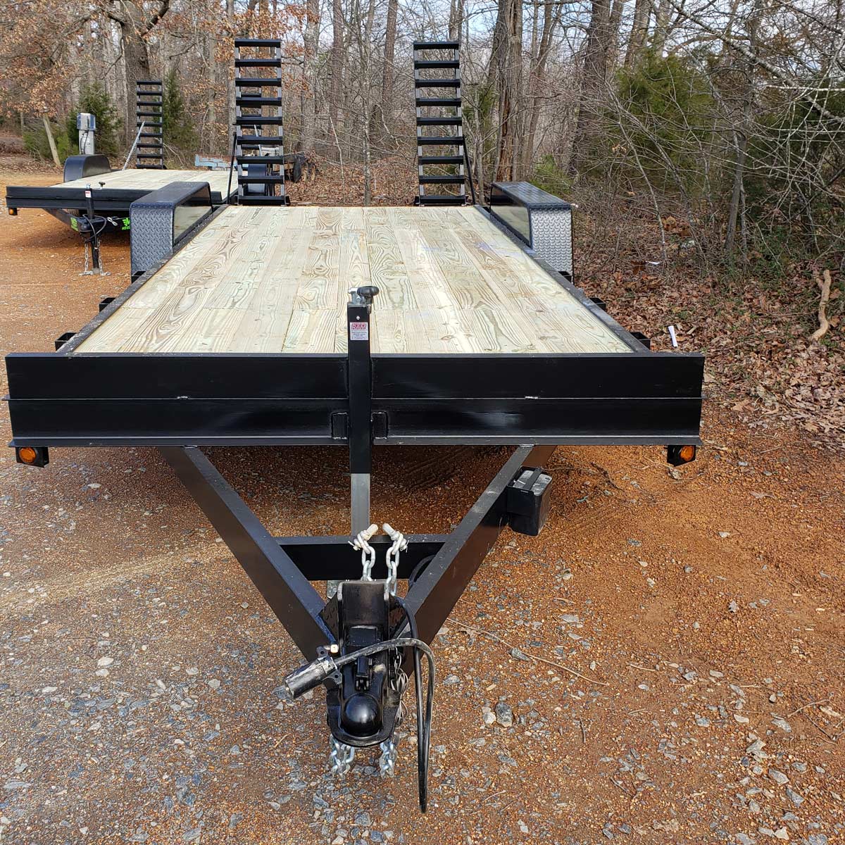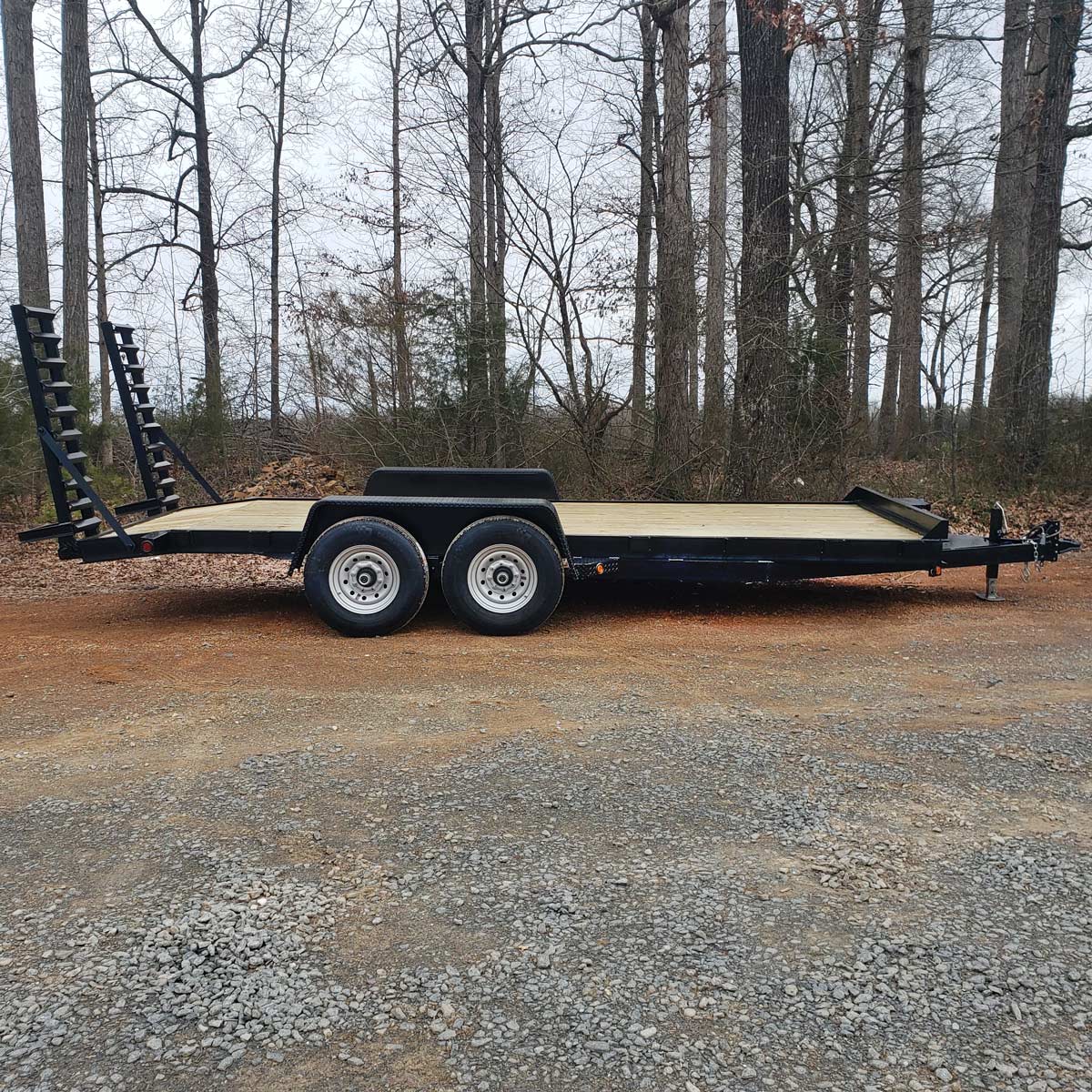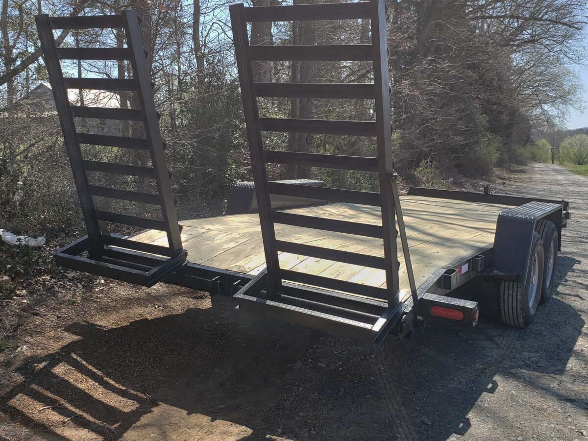 Brand new 20′ Long equipment trailer with 14,000 lb capacity. 7,000 lb dual axles. Ball hitch. Can custom build from 14′ to 24′ Local Pickup Only